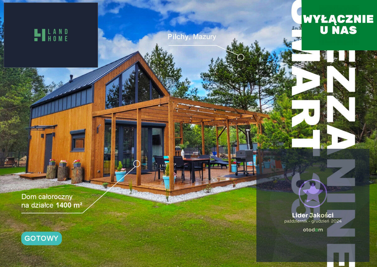 Mezzanine Smart 35 to nowoczesna bryła z dużymi przeszkleniami, które doświetlają wnętrze i otwierają je na otoczenie.Dom gotowy, wybudowany, posadowiony na uzbrojonej i ogrodzonej działce o powierzchni 1 400 m² w miejscowości Pilchy, bez potrzeby oczekiwania na wykonanie ani załatwiania formalności. To propozycja zarówno dla rodzin, jak i inwestorów - jako dom główny, wakacyjny lub pod wynajem.